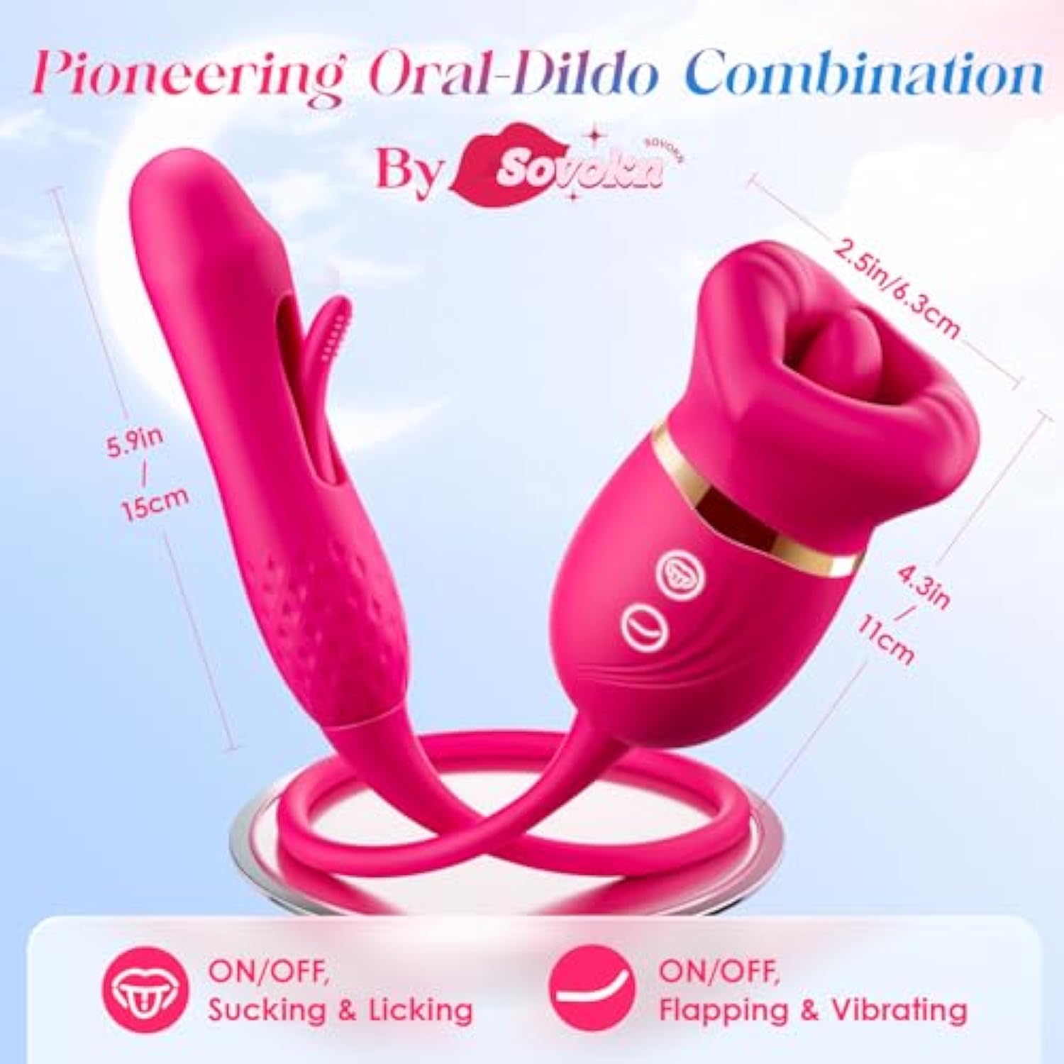 Vibrator Dildo Women Sex Toys - Mouth Rose Sex Toy Flapping G-Spot Vibrators With 10 Tongue Licking, Suction & Vibrations, Sucking Vibrator For Clit Nipple Anal Stimulation For Women Couples