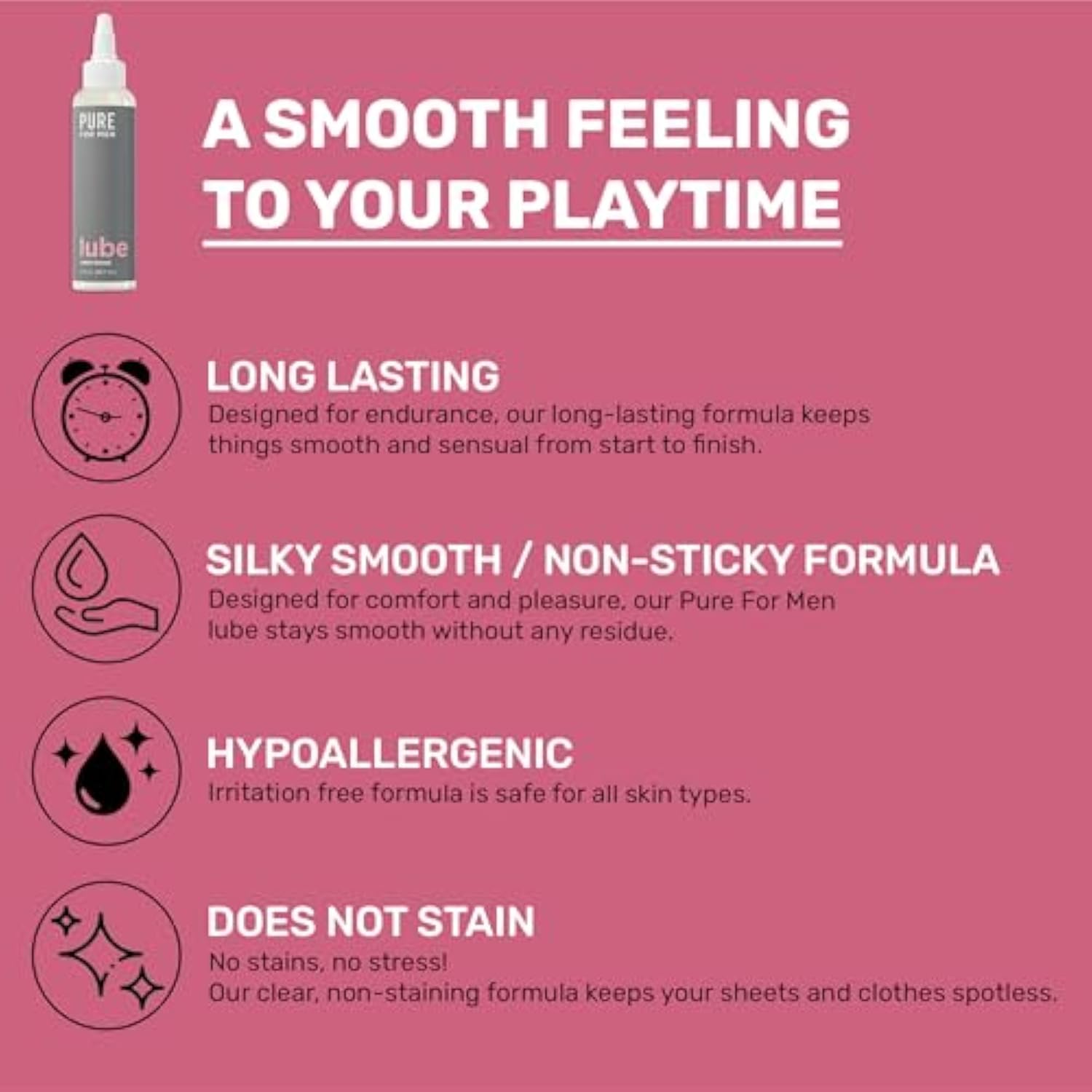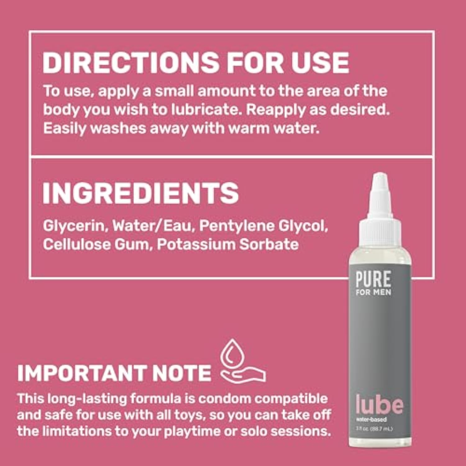 Water Based Lube – Clean, Non-Sticky Personal Lubricant For Men & Couples – Toy And Condom Compatible, Hypoallergenic, Non-Staining Formula – Long-Lasting Wet Glide – 3 Oz Bottle