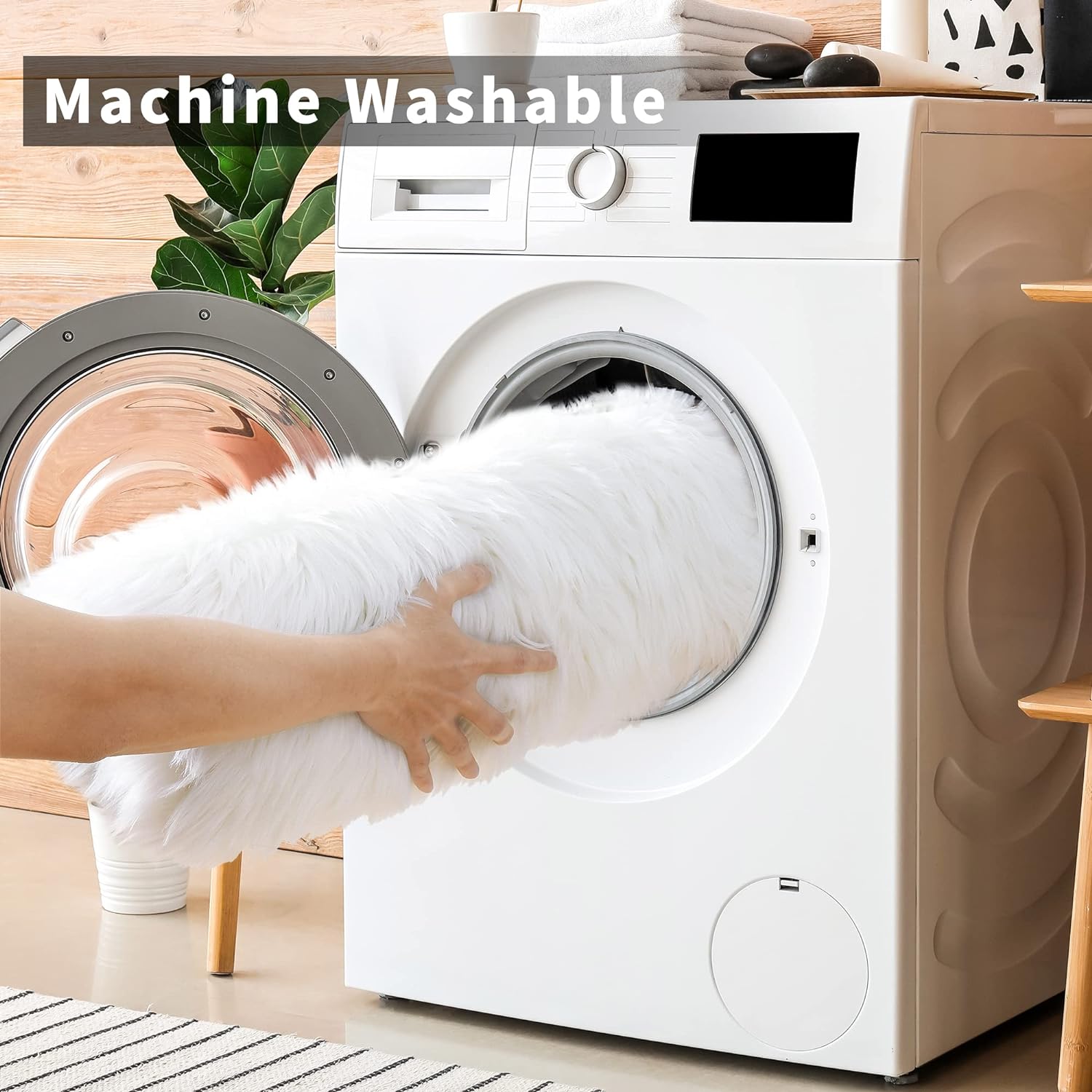 - Machine Washable Area Rugs : Our fluffy carpets simply need to be vacuumed with a handheld vacuum or shaken outdoors.Or machine wash in cold water on a gentle mode.Use a laundry bag to better protect the carpet for bedroom. Please do not worry about the fibers of the plush rug shedding off or fading.