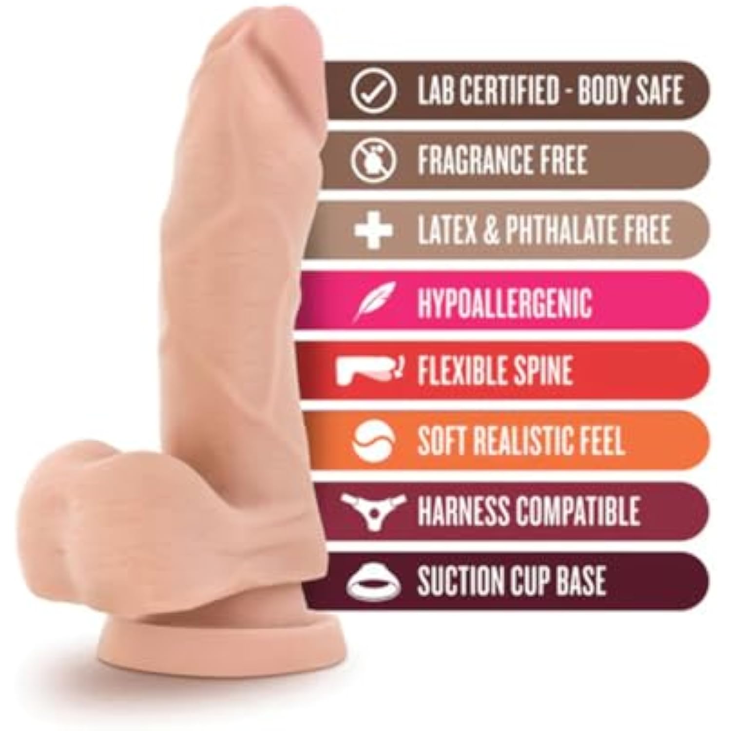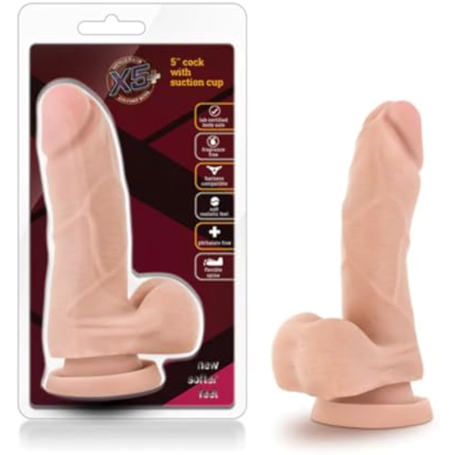 , X5 Plus 5.75 Inch Dildo, Ultrasoft Lifelike Realistic, Slim 1.2" Poseable Shaft, Strap On Compatible Suction Cup For Hands Free Play, Sex Toy For Women Men, Beige